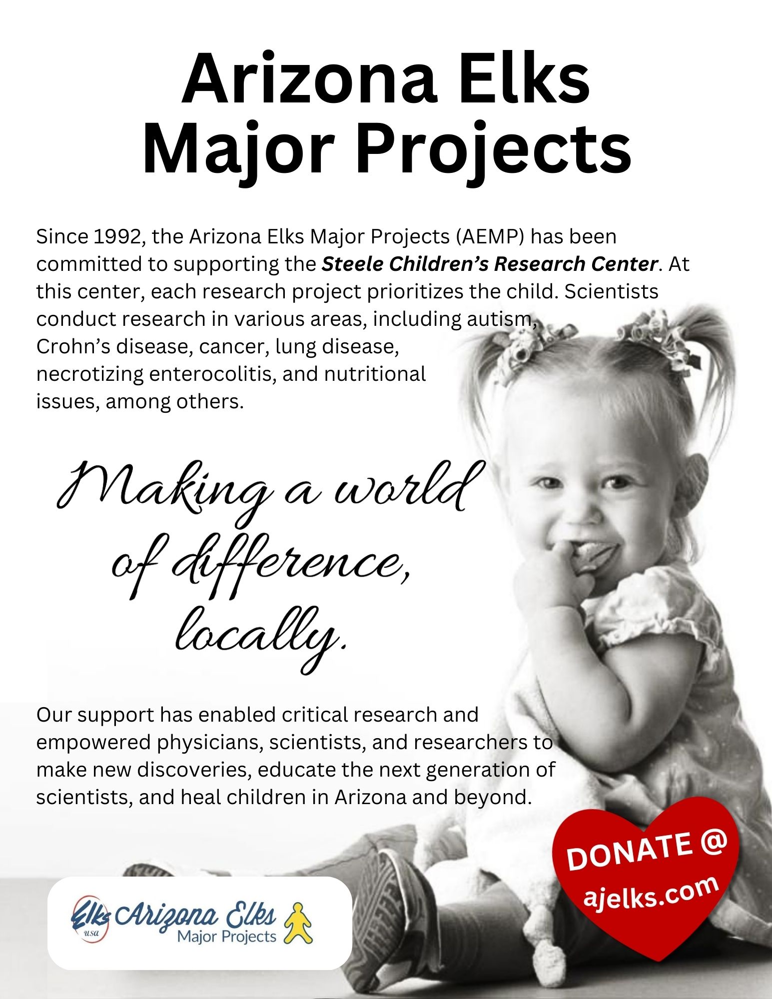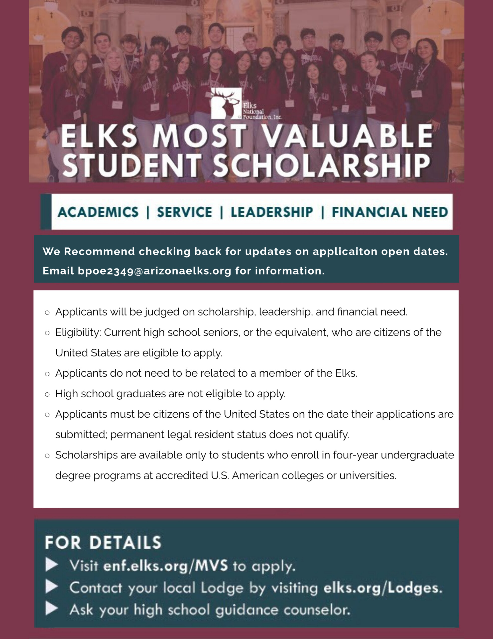 The Elks are dedicated to making a difference in our communities and our state by providing impactful programs for our youth. Contact an AJ Elks officer for further details.